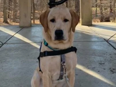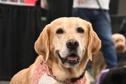 Reba, a beautiful yellow Lab and retired ICAN breeder, now proudly serves as an Ambassador, sharing our mission throughout the community.