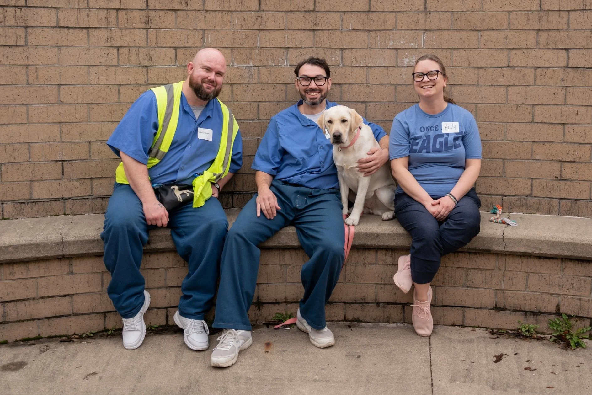 Kelly and ICAN Royal with two of her trainers at Correctional Industrial Facility during Team Training