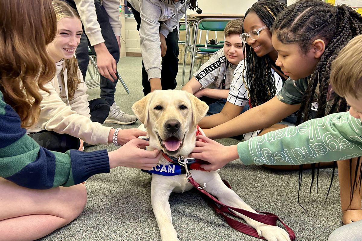 Inspired by the positive impact Indiana Canine Assistant Network (ICAN) dogs were already making at other schools in the district, Kelly began exploring the idea of bringing a facility service dog to her school. She was met with instant support from her supervisors.