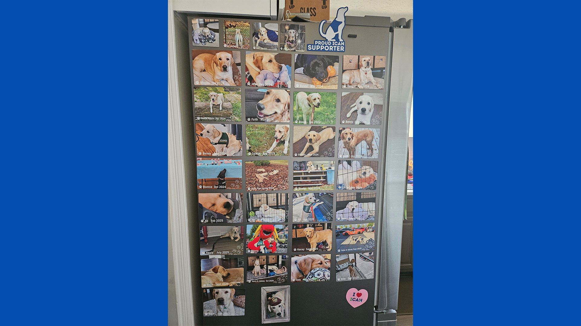 Kitty and Marge’s refrigerator with all their past ICAN dogs.