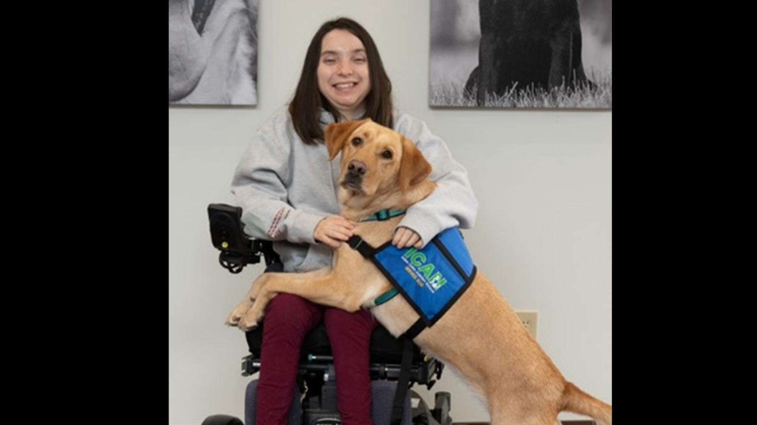 Olivia Goldfarb, an ICAN client and recent high school graduate, has faced the challenges of a rare genetic disorder that has affected her movement and balance since she was eight years old. Throughout her journey, she has found unwavering support from two remarkable ICAN dogs: her first, Ally, and most recently, August.